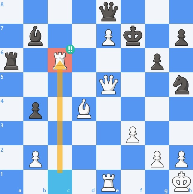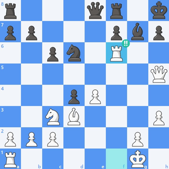 To avoid the defensive brilliancy, White found the picturesque block, Rf6!!