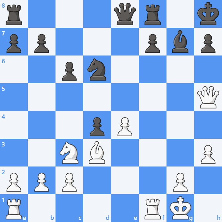 I played …f5, which wins because Bxf5+ g6, threatens the bishop while mate on c1 remains. White can throw in a series of “spite checks” but that won’t change his fate.